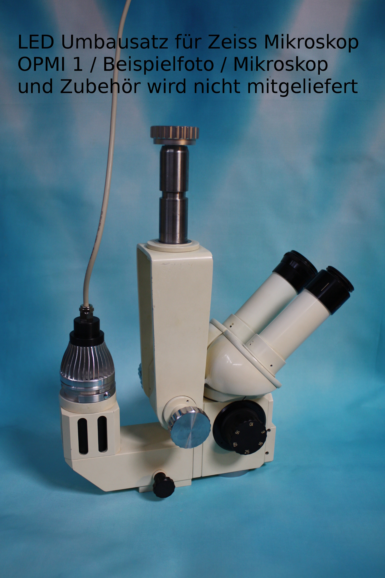 UMBAUSATZ: LED Mikroskopbeleuchtung komplett für Zeiss West Mikroskop OPMI 1 für die ältere Generation. Die Abbildung zeigt das OPMI 1 mit Teilstativ und LED Anbau und DC-Regelnetzgerät mit Klemmvorrichtung. Das abgebildete Mikroskop und Stativ sind selbstverständlich nicht im Lieferumfang enthalten ! Es dient lediglich zur Information ! Wir unterscheiden zwischen LED-Umbau und LED Einbau. Den Umbau können Sie selber durchführen, wie in diesem Fall. Den LED-Einbau übernehmen wir auf Anfrage in unserem BW-Optik Betrieb.Sie erhalten den LZKK OP 1 (LED-Zentriekühlkörper) mit DC-Regelnetzgerät mit Klemmvorrichtung, die für die Original OPMI 1 Stativsäule Durchmesser 54,5 mm vorbereitet ist und an dieser wunschgemäß positioniert werden kann.Der LZKK OP 1 mit LED ist bei dem OPMI 1 mit unterschiedlichen Objektiven zu nutzen und darauf hin abgeglichen bzw. abgestimmt. Der Austausch zum Beleuchtungskörper 6 Volt / 30 Watt ist schnell durchgeführt, denn der zylindrisch vorbereitete LZKK OP 1 wird lediglich gegen das komplette Original OPMI Leuchten-Gehäuse ausgetauscht und befestigt. Eine ausführliche Bedienungsanleitung wird mitgeliefert.Das Besondere des LZKK OP 1 ist neben den anderen LED-Vorteilen, im enormen Lichtzugewinn bei 5600 / 6500 Kelvin zu sehen, da bei unseren eingesetzten LEDs kein Einschalten des Konversionsfilters am OPMI 1 Gehäuse erforderlich ist. Dieser ist allerdings, um Tageslichtspektrum zu erzielen, bei der Halogenbeleuchtung (3300 Kelvin) 6 Volt / 30 Watt zwingend erforderlich. Dies hat zur Auswirkung, dass die Lichtintensität um ca. 2/3 gesenkt wird. Also nur noch 1/3 an effektiver Lichtintensität verbleibt. Somit wird der besondere Vorteil des LZKK OP 1 deutlich ersichtlich, denn die volle Lichtintensität bleibt über den gesamten Regelbereich mit Tageslichtspektrum erhalten. Das OPMI 1 gehört zu einer der solidesten Operationsmikroskope der älteren Generation, mit einem äußerst präzisen verarbeiteten und standfestem Stativ. Das OPMI 1 bewährt sich durch ein großes Anwendungsspektrum im Bereich Waren-, Materialprüfung, Technik, Kontrollaufgaben usw.. Für diese technischen Aufgabenbereiche ist der Umbausatz LZKK OP 1 von uns entwickelt worden. Nicht für Operationstechnik oder Arbeiten bei humanmedizinischer, sowie veterinärmedizinischer Anwendung. Wir beschäftigen uns seit Jahren mit der LED Technologie. Lesen Sie auch hierzu unsere LED Kundenerfahrungsberichte auf unserer Homepage. Unser ernsthaftes Arbeiten garantieren Ihnen professionelle Ergebnisse. Wir bieten auch Okular Augenmuscheln für Okulare 12,5 für Zeiss Opmi 1 und Opmi 9 an. Es stehen eine Vielzahl LED-Umrüstsätze / LED-Einbausätze für Mikroskope anderer Hersteller zum Beispiel Zeiss Jena / Nikon / Zeiss West / Olympus / Lomo / Leitz usw. zur Verfügung. Lassen Sie sich von unserem Techniker beraten.